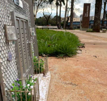 Esta é a terceira MiniPorta de Maringá, feita a base de madeira com detalhes em metal e alumínio. Foi colocada perto do centro da Praça Rocha Pombo em 6 de março de 2021. Já foi recuperada algumas vezes mas permanece resistindo no mesmo lugar!